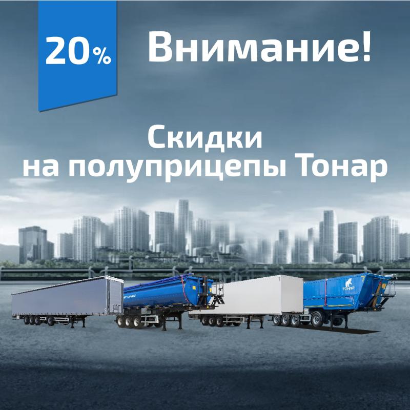 С 9.07.2025 на технику Тонар 2025 года выпуска действует скидка 20% на приобретение в Лизинг.